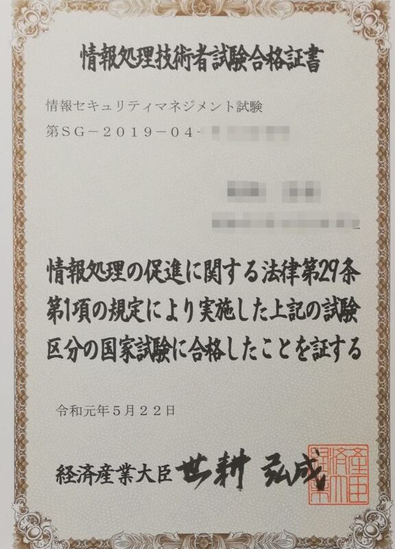 情報セキュリティマネジメントの合格証書:スキルと知識の正当性の証明
