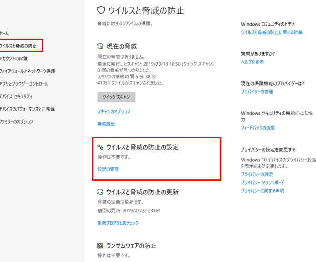 2. 「ウイルス及び脅威の防止」をクリックします。